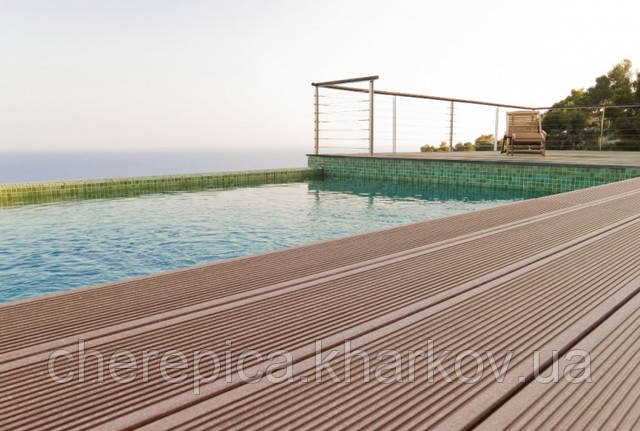 Полімерна дошка для терас від компанії Woodplast з успіхом використовується для оформлення території навколо басейнів і пірсів.Ціна на терасну дошку з композиту порівнянна з ціною дерев'яної терасної дошки.