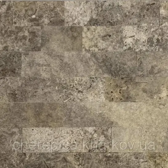 Травертин Silver Brushed срібного кольору у форматі 10 FL, використовується для вхідних груп, цоколя і облицювання інтер'єрів.