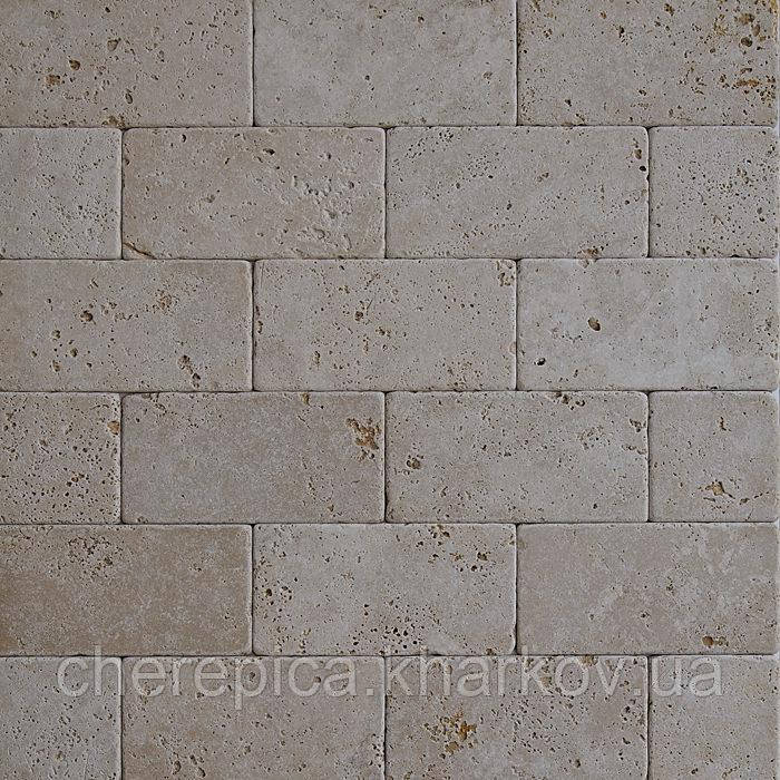 Натуральний камінь травертин світло-бежевого кольору Light Tumbled у форматі 1,2*20*40 см є ідеальним варіантів для облицевания фасаду, цоколя, вхідних груп, басейнів, парканів та інтер'єрів.