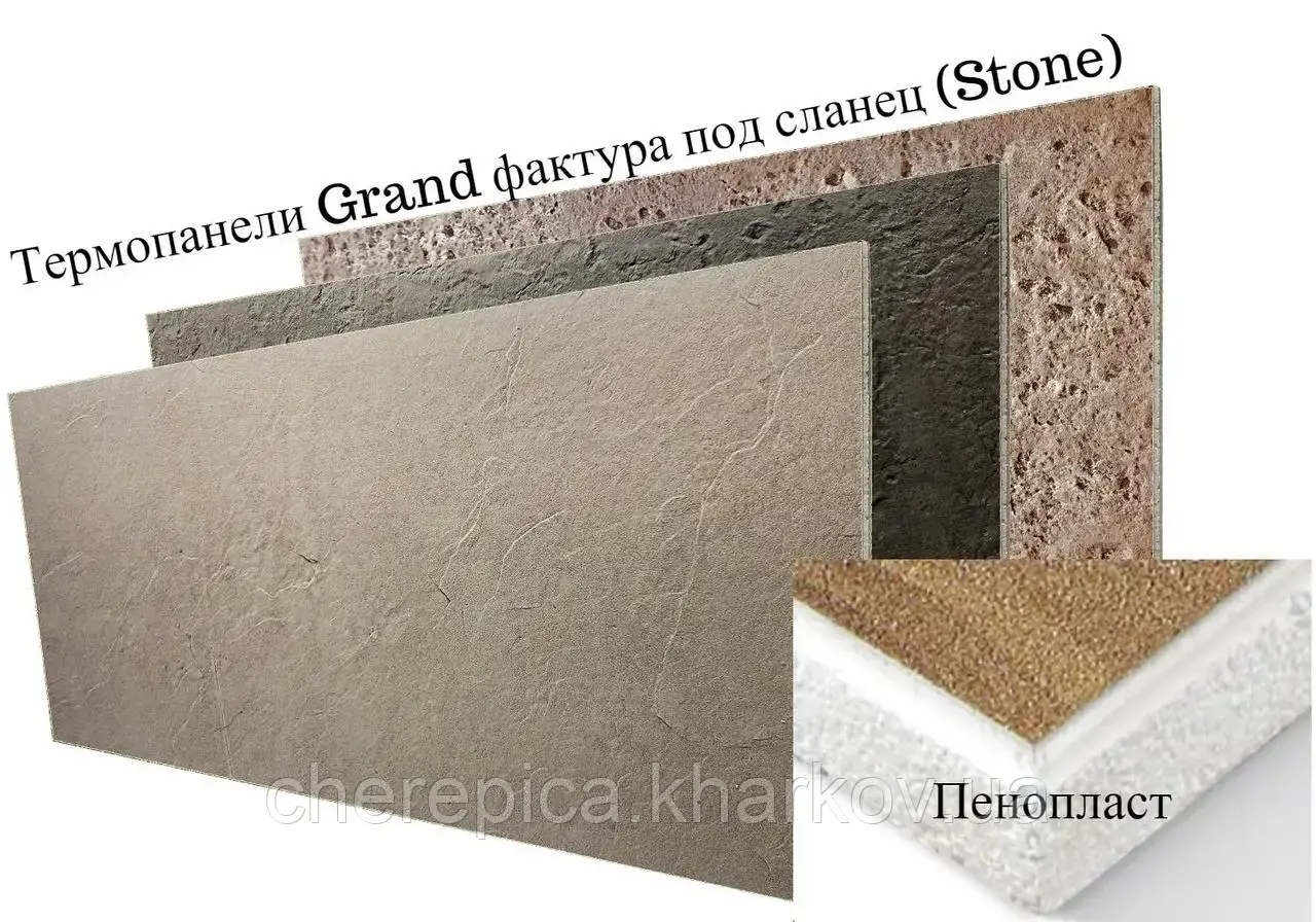Фасадні термопанелі Stone представляють собою плити з нанесеним в заводських умовах захисно-декоративним шаром, що складається з мармурової крихти та акриловим зв’язуючим.