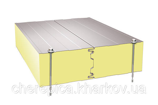Сендвіч-панелі RUUKKI SP2E X-PIR ENERGY — це сендвіч-панель підвищеної енергоефективності з пінополізіїзоціануратним наповнювачем і холодильним типом замка особливої конфігурації.